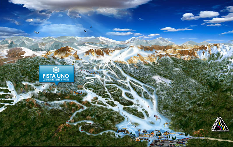 The privileged location of Pista Uno by the long Las Pendientes(*) trail enables visitors to ski out of the cabins in order to instantly enjoy all the snow of incredible Mount Chapelco.